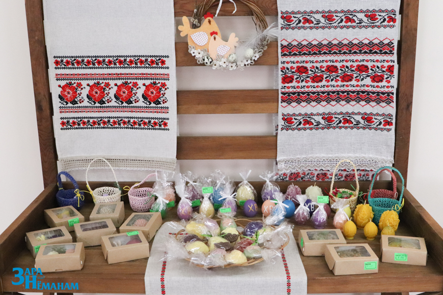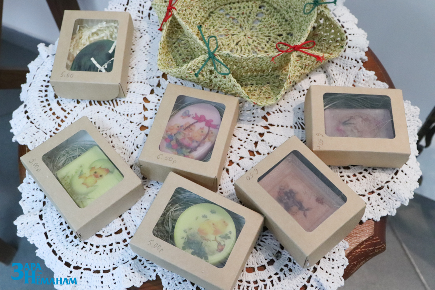 Мария Иосифовна Севастьянович поражает своим творческим потенциалом: она занимается изготовлением мыла, свечей, вяжет корзинки, создаёт бижутерию. Сама красавица, она создаёт красивые вещи. На выставке представлены все грани талантов Марии Иосифовны. Заинтересуют потенциальных покупателей свечи в виде пасхальных яиц, мыла-барашки, мыла-скрабы, которые выполнены из экологически чистых материалов.
