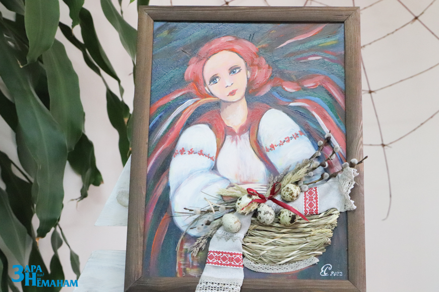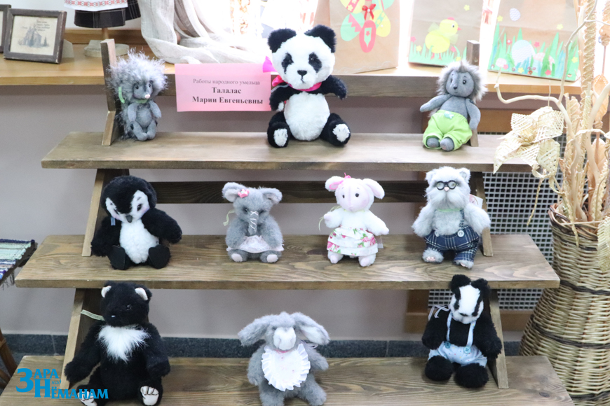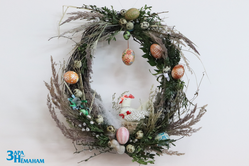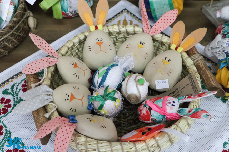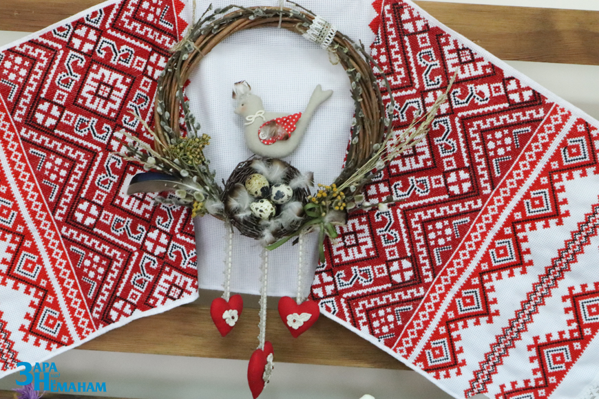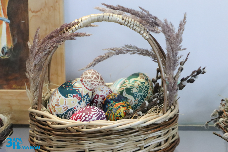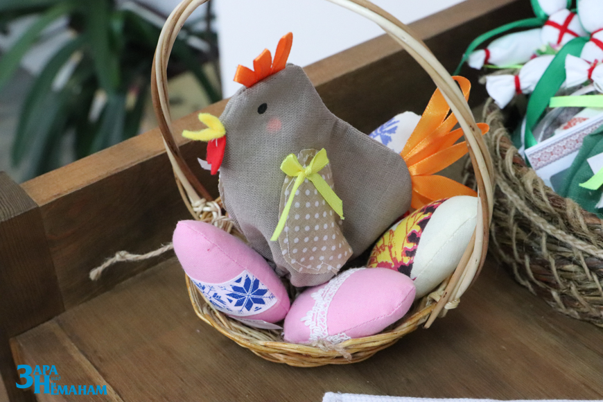 На выставке заняли своё почётное место работы известных в районе мастериц Клавдии Гриб и Марии Севастьянович. Экспозиции работ Клавдии Алексеевны неизменно пользуются интересом посетителей. На данной выставке представлены иконы из бисера, веточки вербы, вязаные формочки яиц, цыплят, букеты цветов, различные вязаные салфетки и много других изящных вещиц для недорогого сувенирного подарка к Пасхе. Посетители выставки с удовольствием послушали стихи К. А. Гриб. В них оптимизм и добродушие: