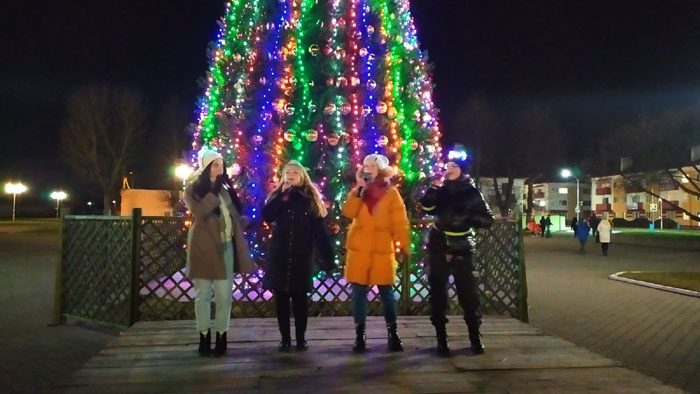 Поддерживала хорошее настроение музыкальная открытка от солистов районного центра культуры. «Новогодняя песня», «Кабы не было зимы» - любимым песням подпевали все. А под современные хиты танцевали вместе с минским коллективом «IMPULSE GROUP». Для детей и взрослых они приготовили конкурсы, а самые активные мостовчане получали призы.