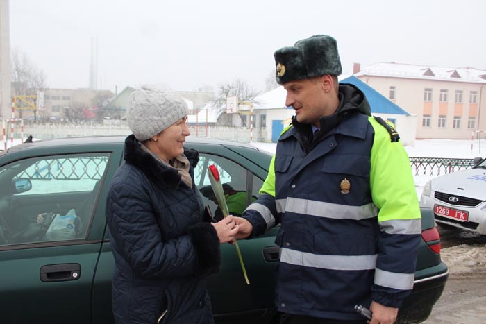 В День женщин дежурство у сотрудников Госавтоинспекции началось необычно. Обеспечивая дорожную безопасность на улицах города, они останавливали автомобили, которыми управляли представительницы прекрасного пола.