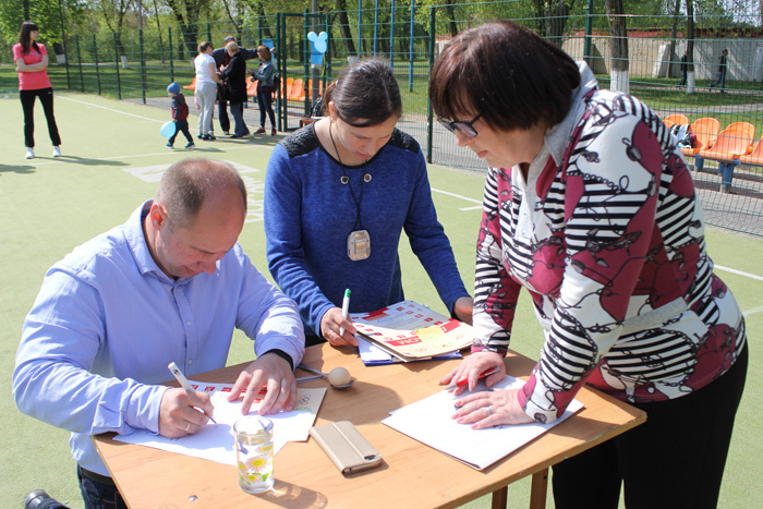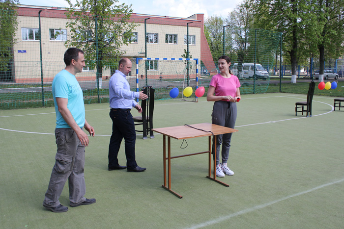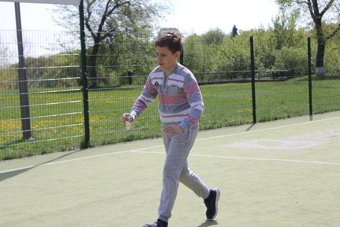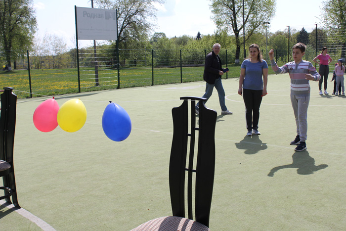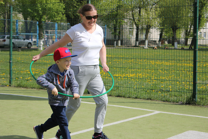 И вот – дан старт. Каждая команда из трёх человек распределила обязанности. Мамы начинали соревнования. Им необходимо было пробежать с яйцом в ложке, не разбив его. Следом в состязания вступили бабушки, которые на большом расстоянии должны попасть дротиками в воздушные шары. А это оказалось трудным делом, ведь необходимо сделать поправку на ветер, который так легко сносит мишень. Затем юные участники пробежав со стаканом воды вернулись на старт, передав эстафету мамам, которым предстояло прыгать через скакалку. И наконец финал – бег в хула-хупе бабушек с внуками.