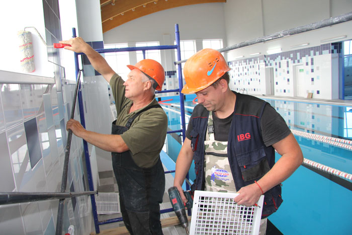 – Все крупнейшие промышленные и социальные объекты в Мостах и сельхозпредприятиях района возведены нашими руками, – сказал Виктор Иванович. – Сложилась такая практика, что нам доверяют самое важное и самое ответственное в строительной отрасли. К нам обращались, когда необходимо было возвести новый цех на ОАО “Мостовдрев”, реконструировать столетний дом в Лунно, построить современные фермы в сельхозпредприятиях и жилые дома в Мостах. Когда возникла необходимость реконструировать бассейн в городе, также это ответственное дело поручили нам. Со всей серьёзностью мы взялись за работу в сентябре прошлого года. Здание было почти полностью разобрано и возведено по современных технологиях. В самые напряжённые периоды на стройке работало до 140 человек. Строители под руководством прорабов Андрея Яроцевича и Юрия Станюкевича с высоким качеством и на современном уровне выполнили все общестроительные и отделочные работы. Их объём составил около 3,5 миллиона рублей. Теперь на этом объекте идёт пуско – наладочный период. Бассейн буден сдан в эксплуатацию ко Дню города Мосты. Те, кто был там, могли восхитится красотой и уютом этого объекта оздоровления. Уверен, что он очень понравится мостовчанам и будет востребован.