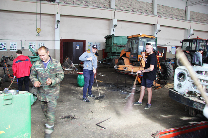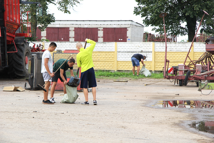 Утром с ребятами провели инструктаж агроном отделения «Дубно» В.И.Мальченков и заведующий ремонтными мастерскими С.И.Клочко. Они и рассказали ребятам, что и как необходимо сделать, чтобы в мастерских и на территории был порядок. Помощь ребят очень кстати. Механизаторы, водители и другие работники хозяйства сейчас заняты уборкой зерновых и заготовкой кормов, целый день в поле, не всегда есть время привести в порядок места хранения и ремонта техники. Ребята с желанием и хорошим настроением взялись за работу.