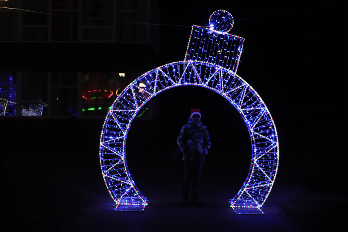 В этом году к уже имеющимся объектам новогодней инсталляции добавились и новые. Это большой шар, установленный возле кареты, а также светящаяся аллея, которая появилась вдоль улицы Советской у районного центра культуры. Они не только украсили город, но и сразу же превратились в любимые фотозоны мостовчан для памятных снимков.