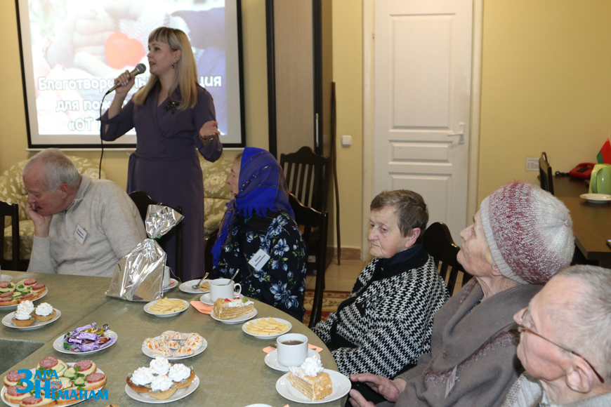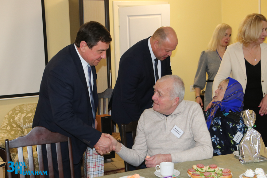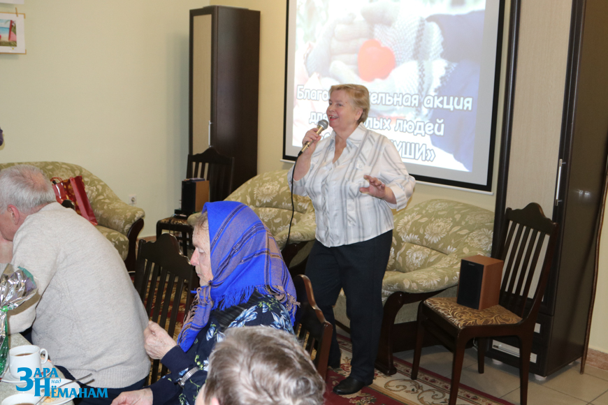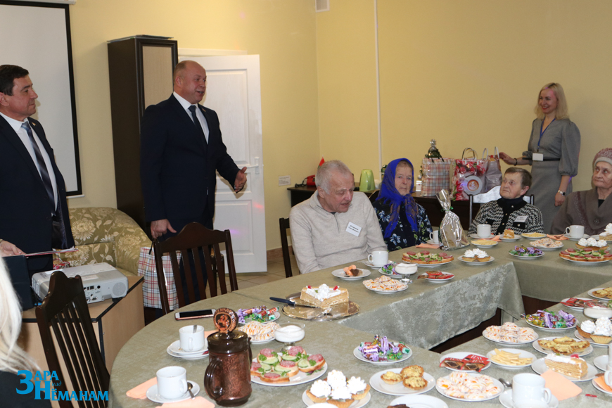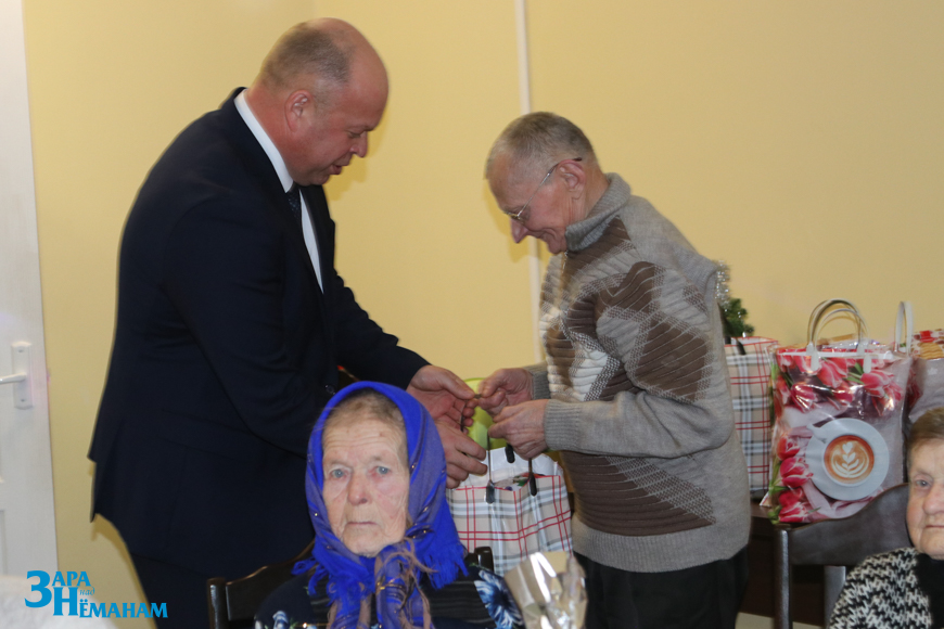 Много тёплых слов прозвучало и от председателя районной организации ветеранов Ирины Серебровской и председателя районного объединения профсоюзов Елены Рогацевич, которые тоже регулярно навещают жителей дома в аг. Зарудавье.