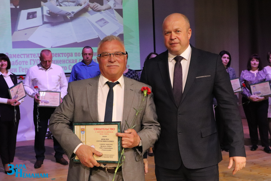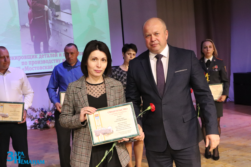 Вместе со свидетельством о занесении на Доску почёта получили признание, почёт и уважение от руководства района, своих коллег и всех мостовчан главный ветеринарный врач-гинеколог ЗАО «Гудевичи» Андрей Цапко, тракторист-машинист КСУП «Имени Адама Мицкевича» Павел Цесловский, главный энергетик филиала «Дубно» ОАО «Агрокомбинат «Скидельский» Сергей Шевелёв, заместитель директора по воспитательной работе Лунненской средней школы имени Героя Советского Союза Ивана Шеремета Лариса Эйсмонт, начальник дежурной смены ПАСЧ-1 Мостовского РОЧС старший лейтенант внутренней службы Игорь Янченя.