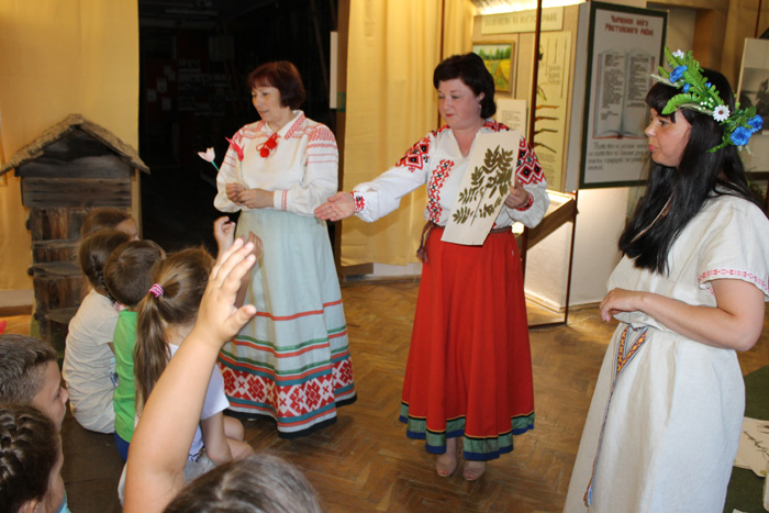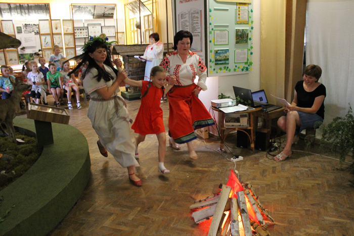 Даволі спакусліва, праўда? Вось і рабяты, што прыходзяць у музей, з ахвотай становяцца актыўнымі ўдзельнікамі мерапрыемства, каб дасягнуць жаданага прыза. Падчас тэатралізацыі ёсць магчымасць загадаць жаданне і завязаць стужку на бярозку, каб тая адарыла сваёй жыватворнай сілай, па паху адгадаць рамонак і мяту, якія мама кладзе ў чай, пераскочыць хай сабе і праз імправізаванае вогнішча, каб увесь год не сустракацца з хваробамі, навучыцца гуляць у “ручаёк” і плесці прыгожыя вянкі з лугавых кветак.