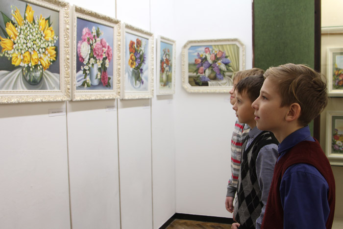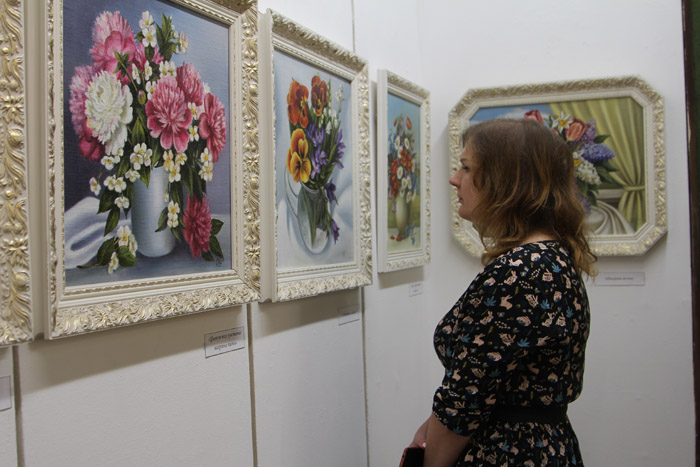 Сапраўды, выставачная зала музея быццам напоўнілася духмяным водарам кветак. Тут радуюць вока і шыкоўныя ліліі, і пяшчотныя браткі, і, канешне ж, каралева кветак – ружа.