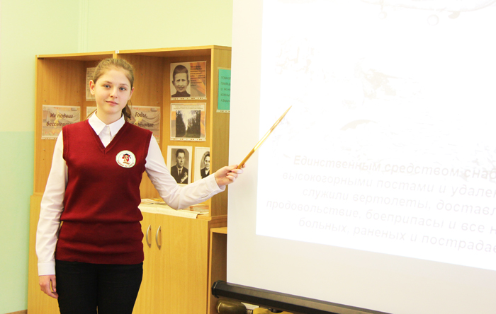 - Мы выкарыстоўваем розныя формы работы з вучнямі,- расказала кіраўнік музея Лілія Дзямешчык. - Праводзім экскурсіі, гутаркі, класныя гадзіны, прэзентацыі і многа чаго іншага. Васьмікласнікі, напрыклад, пабывалі ў Мінску на “Востраве слёз” ля мемарыяла афганцам. Працягваем сувязь з нашымі выпускнікамі, якія бралі ўдзел у той далёкай вайне, сабіраем іх асабістыя рэчы, успаміны, узнагароды, а таксама публікацыі ў сродках масавай інфармацыі. Усё гэта знаходзіць сваё месца ў нашым музеі. Адчуваем гонар за нашых землякоў, якія дастойна паказалі сябе на вайне.