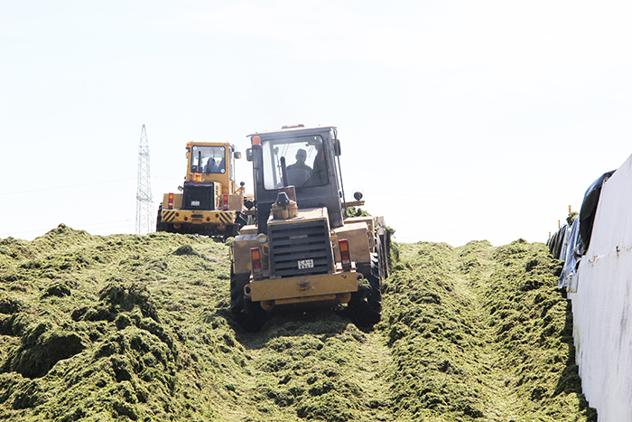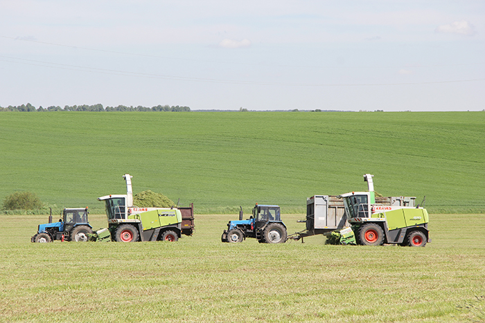 Одна за другой подъезжают к сенажным траншеям на ферме «Большая Рогозница» гружёные измельчённой зелёной массой автомашины и трактора с прицепами. Их взвешивают и отправляют на разгрузку. В кузовах по 10-15 тонн сенажа. Дальше в дело вступают «Амкодоры», которые прессуют массу, выдавливая из неё лишний воздух.