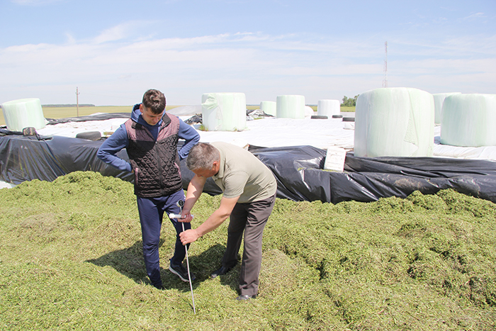 – Трамбовка – один из важнейших элементов качественной закладки кормов, – утверждает Игорь Дереченик. – Поэтому здесь также работают наши наиболее опытные механизаторы: Пётр Москвенков, Владимир Красько и Пётр Черницкий. Как правило, два «Амкодора» работают днём, один ночью. Качество кормов контролируют специалисты управления сельского хозяйства и продовольствия, агрохимлаболатории, ветстанции. Есть у нас все необходимые инструменты для контроля различных параметров.