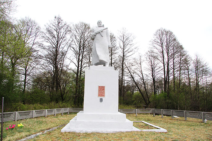 После войны на родные пожарища вернулись жители деревни, воевавшие в партизанских отрядах. Государство оказало им помощь в выделении леса и других материалов. И вскоре на месте сожжённой деревни было построено 36 домов. Большинство жителей трудилось в местном колхозе «Ленинец». Бывшие партизаны и стали инициаторами возведения на братской могиле памятника. После войны здесь был установлен деревянный крест. Для увековечения памяти сотен погибших людей нужен монумент. Статуя партизана с автоматом стала основой скульптурной композиции. Памятник установили за средства колхоза при содействии государства. В дни памяти и скорби к нему приезжают дети и внуки погибших.