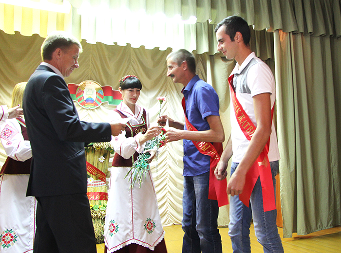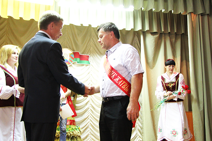 С праздником поздравил хлеборобов руководитель сельхозпредприятия Владимир Писаревич. Слова благодарности он высказал всем, кто был причастен к выращиванию хорошего урожая этого года.