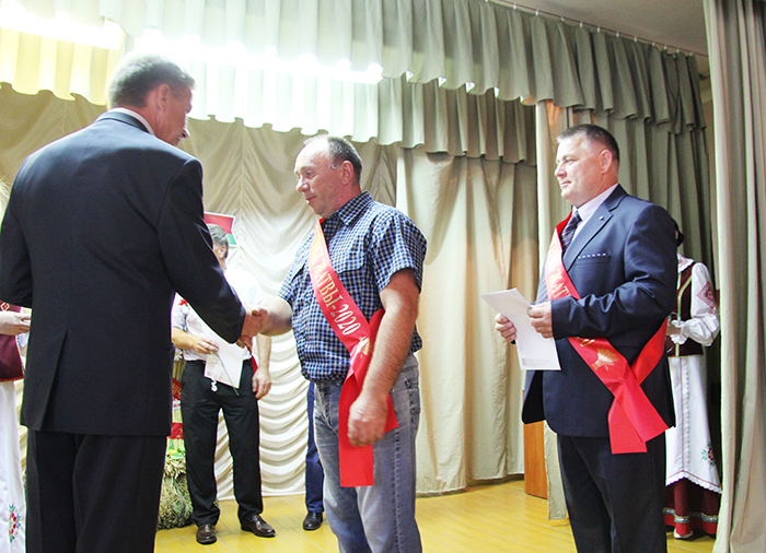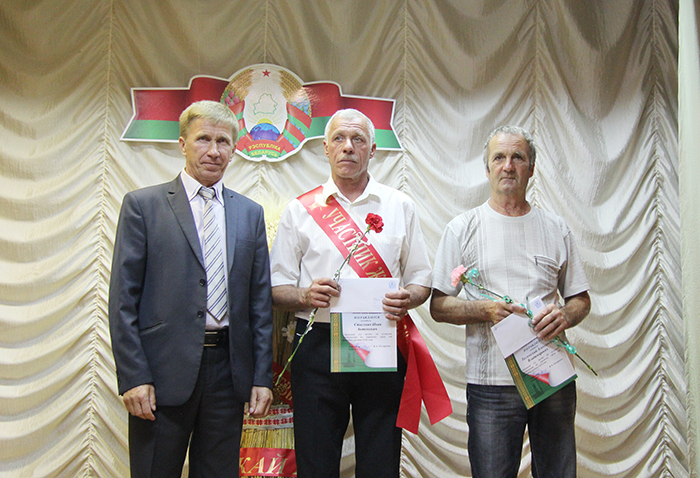 Юрий Костоломов вручил Благодарственное письмо и премию за старательный труд трактористу-машинисту Ивану Щановичу. Таких наград удостоены также тракторист-машинист Виктор Буйко и водитель Николай Заяц.