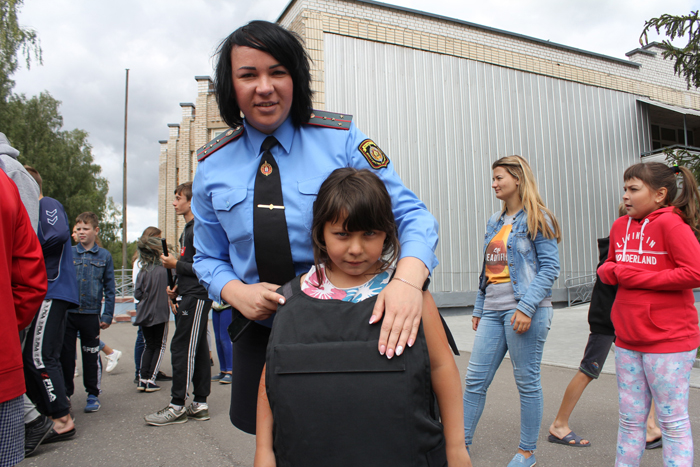 4 июля надолго запомнится мальчикам и девочкам, а также воспитателям 2-ой смены лагеря «Неман». Ведь в этот день они не только смогли из первых уст услышать о работе милиции, но и внимательно рассмотреть милицейскую амуницию. А Виктор Станиславович привёл с собой служебную собаку – немецкую овчарку. Восторгу детей не было предела!