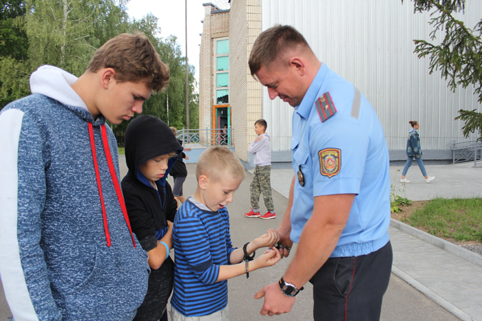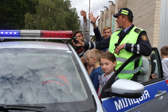 В ВОУ «Лагерь «Неман» с добрым поводом приехали заместитель начальника Мостовского РОВД по идеологической работе и кадровому обеспечению Андрей Лучко, ВРИОД начальника инспекции по делам несовершеннолетних ОВД Ирина Ланкевич, инспектор ДПС ОГАИ Мостовского РОВД Денис Драбинович, милиционер-кинолог Виктор Болтрукевич. С ребятами они провели профилактическую беседу и показали милицейскую экипировку, используемую в повседневной работе, а также для экстремальных случаев.