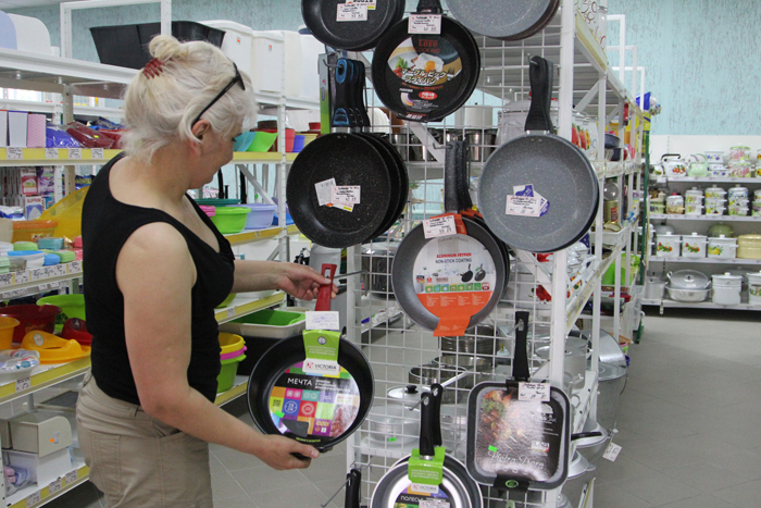 – Мне нужно купить средства для мытья посуды, санузла, губки, салфетки. Обустраиваю столовую. И как же приятно, что на соседних стеллажах я всё это могу найти.
