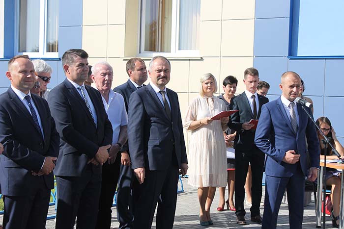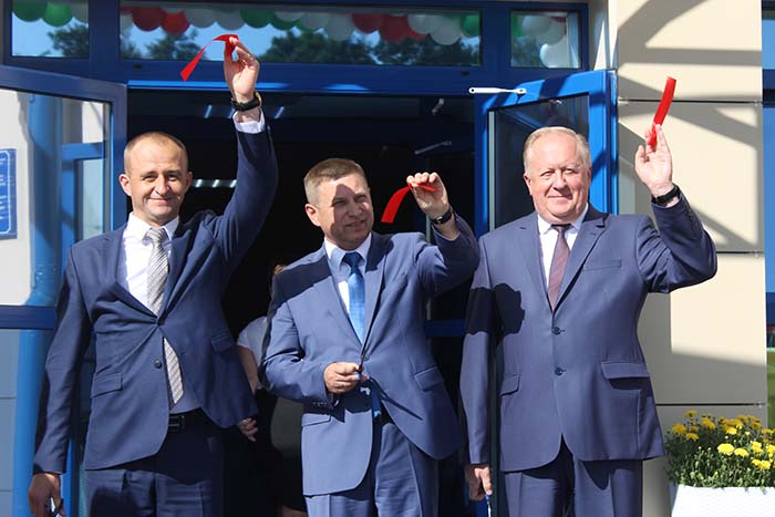 И вот наступает торжественный момент: красную ленту перерезают помощник Президента Республики Беларусь – инспектор по Гродненской области Иван Лавринович, заместитель председателя облисполкома Виктор Лискович, председатель районного исполнительного комитета Юрий Валеватый.