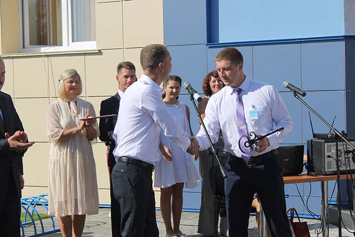 Символический ключ, который открывает все двери ФОКа, его директору Дмитрию Ботько, вместе с пожеланиями мостовчанам всегда быть в отличной спортивной форме передал представитель ООО «Стройбыт –ЗОВ».