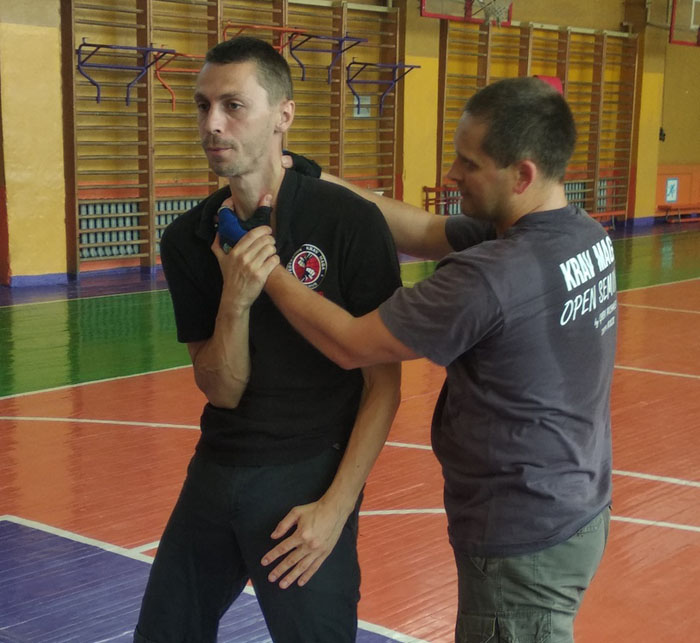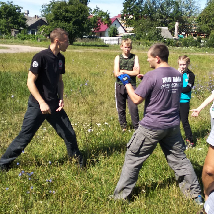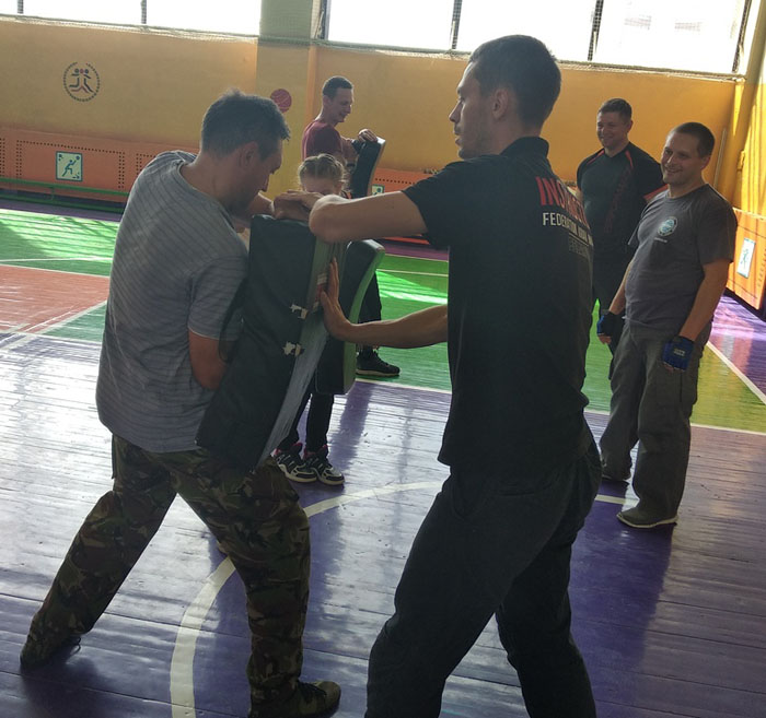 Во время семинара приходилось постоянно двигаться и бить, захватывать и освобождаться от захватов, защищаться от нападений в положении, когда оказались на земле, от угроз и атак ножом. Один из важнейших принципов системы – избежание травм в ходе поединка с противником.
