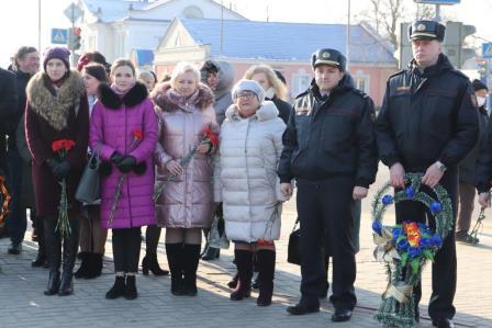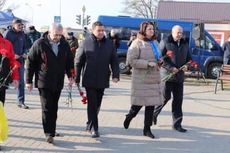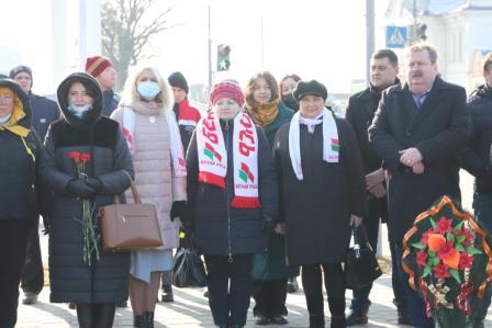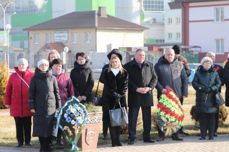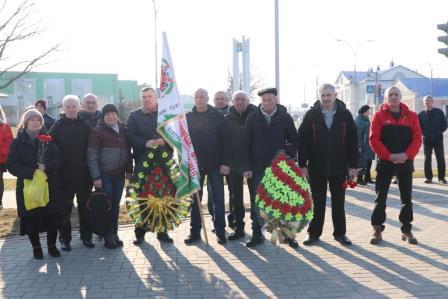 К памятному знаку, что стал зримым символом воплощения мужества, подвига, стойкости, в знак уважения, благодарности и признательности легли цветы и венки.