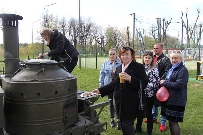 В этот день они посетили тематические площадки «Победный привал»: писали фронтовые письма вместе с работниками почты, вдохновлялись дефиле ретро-моды с учащимися школ, угощались солдатской кухней, организованной Мостовским филиалом Гродненского облпотребобщества и районной организацией Белорусского Общества Красного Креста, посетили мастер-класс по созданию праздничной бутоньерки «Цветок Победы» от районного центра ремёсел и многое другое.