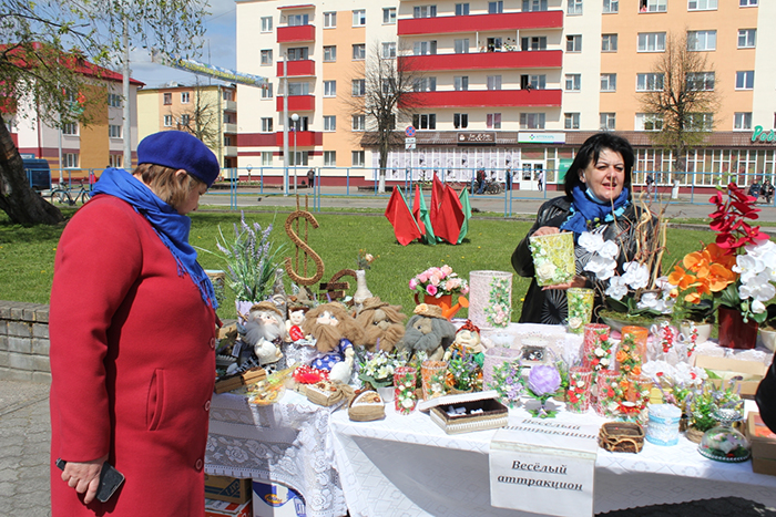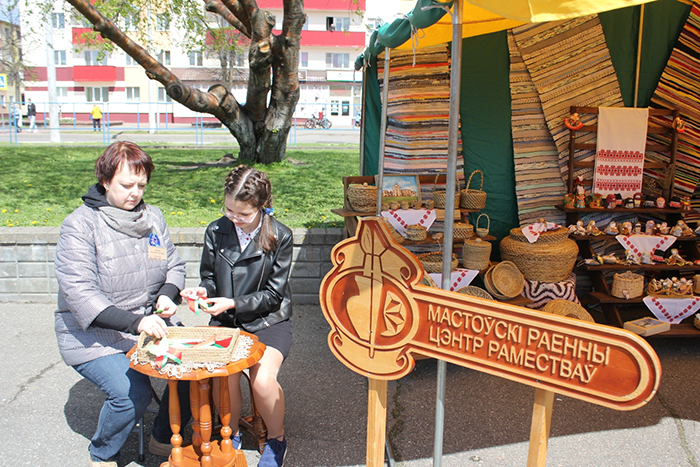 На мастер-классе с районным центром ремёсел можно было изготовить бутоньерку, сыграть в беспроигрышную лотерею. Здесь же мостовчане могли приобрести рукотворные изделия народных мастеров из травы, соломы и других материалов.