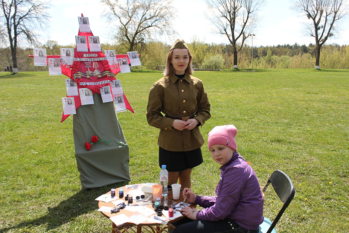 Государственный музей «Лес и человек» предлагал самостоятельно изготовить витраж ко Дню Победы своими руками. Мальчики и девочки участвовали в военно-патриотическом квесте «По следам героев», а рядом потомки поколения героев демонстрировали силу и ловкость в легкоатлетической эстафете «Кубок Победы».