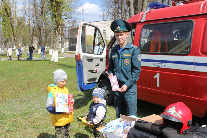 Информировали родителей о недопущении оставления детей без присмотра работники РОЧС в рамках акции «Не оставляйте детей одних». Взрослым и маленьким они рассказывали о правилах пожарной безопасности, демонстрировали оборудование, которое есть в районном отделе на вооружении, раздавали наглядно-изобразительную продукцию, а самым активным мальчикам и девочкам разрешали примерить на себя амуницию спасателя-пожарного.