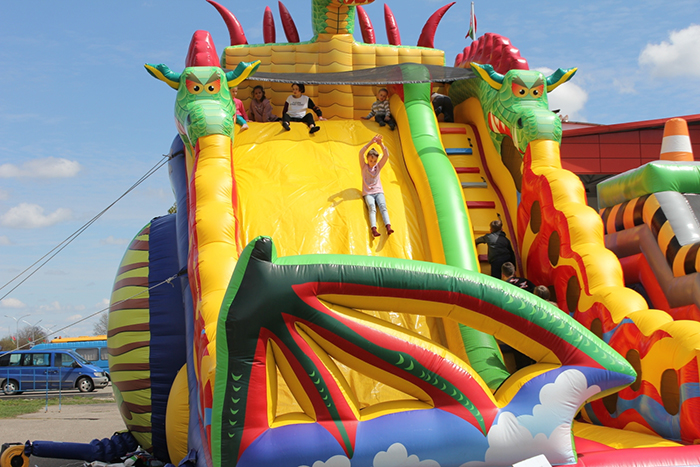 Конечно же, после такой насыщенной программы хочется подкрепиться. Для этого была организована торговая ярмарка. Дети имели возможность отдохнуть на игровых аттракционах, украсить лицо аквагримом, покататься на карусели и вдоволь попрыгать на батуте.