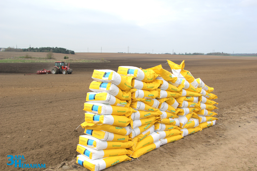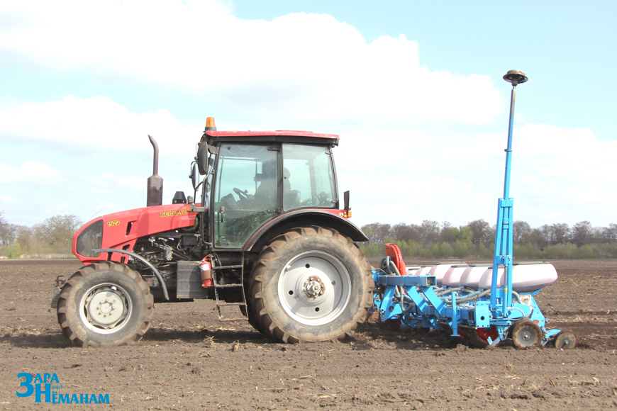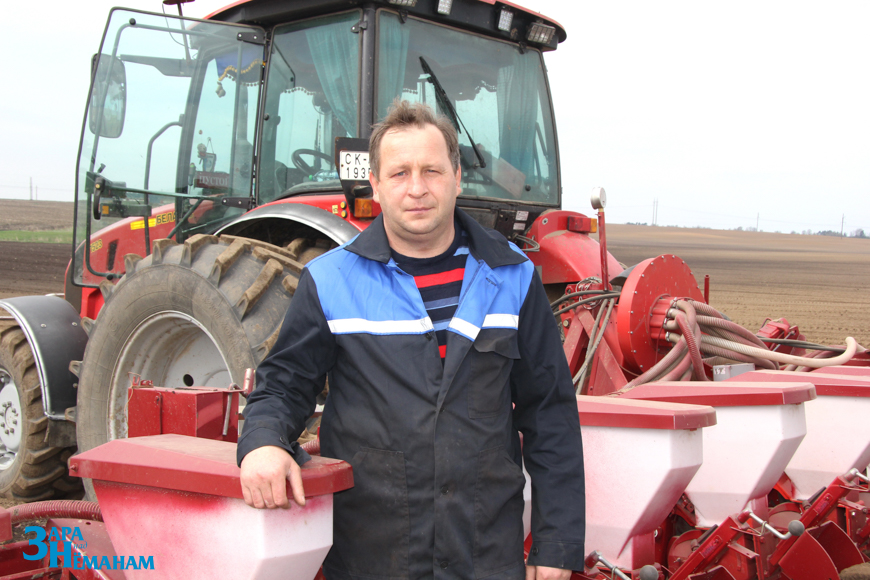 Мы побывали в этом хозяйстве. На поле возле деревни Пилки трудится механизатор Валерий Бартош. Его трактор МТЗ-1523 работает в сцепке с девятиметровой кукурузной сеялкой «Берестье». За световой день механизатор успевает посеять до 50 гектаров.