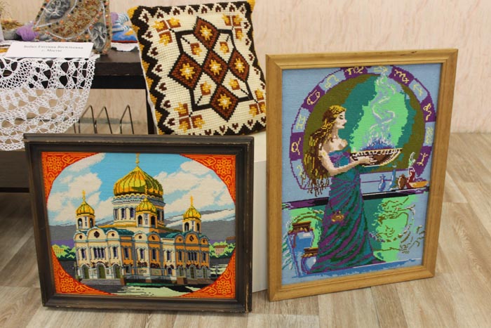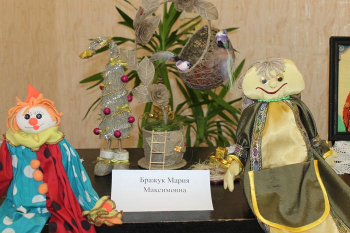 То, что среди людей с ослабленным зрением немало талантливых мастеров, продемонстрировала организованная здесь же выставка декоративно- прикладного творчества. Свои работы в технике вышивки, аппликации, бисероплетения, вязания на спицах и крючком, шитья представили Надежда Яковлевна Копач, Мария Максимовна Бражук и Евгения Васильевна Бобко. Творческая деятельность даёт им возможность не замкнуться в себе и своих проблемах, проявить способности и найти занятие по душе.