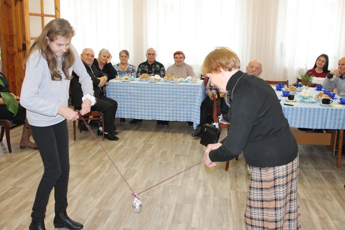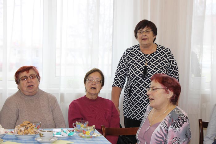 Оптимистичными, неунывающими, талантливыми, добрыми и отзывчивыми – такими предстали участники мероприятия. Вместе с ведущими Светланой Жук и Татьяной Логвиненко они весело шутили, пели, танцевали, играли в фанты, почувствовали себя Золушками, отбирая орешки. А ещё - восхищались красотой цветов диффенбахии, что зацвела здесь на днях, в чём все увидели добрый знак, и тепло общались за чашкой ароматного чая со сладостями, которые были бесплатно предоставлены ЧТУП «БелМосПрод».