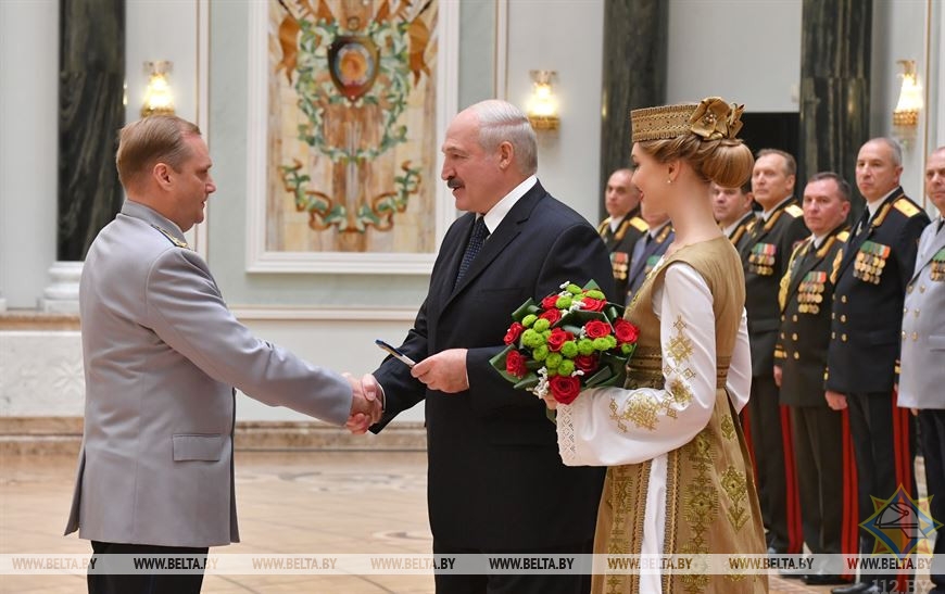 Церемония чествования выпускников военных вузов и высшего офицерского состава состоялась сегодня во Дворце Независимости с участием Главы государства Александра Лукашенко. В ней приняли участие 7 офицеров-выпускников Университета гражданской защиты МЧС Беларуси, а также министр по чрезвычайным ситуациям Владимир Ващенко.