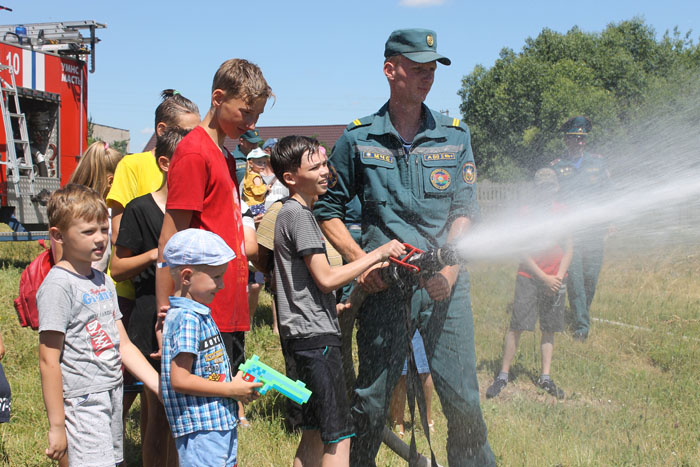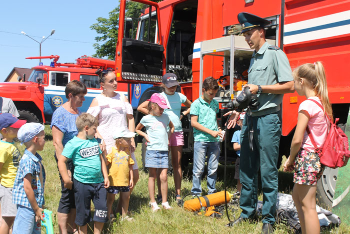 Добрай традыцыяй стаў удзел у святочных мерапрыемствах супрацоўнікаў раённага аддзела па надзвычайных сітуацыях, якія сваё сёлетняе паказальнае выступленне прымеркавалі да рэспубліканскай акцыі “Кірмаш бяспекі”. Начальнік РАНС Генадзь Адамовіч нагадаў вяскоўцам правілы бяспекі, у тым ліку, падчас купання ў рацэ, а таксама заклікаў не пакідаць дзяцей без нагляду. І дарослым, і малым было цікава прымераць “баёўку”, адчуць сябе сапраўдным пажарным падчас карыстання брансбойтам. Яркія эмоцыі выклікаў пажарны фантан, што “вырас” пасярод аграгарадка.
