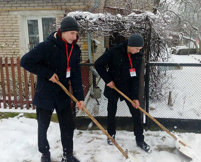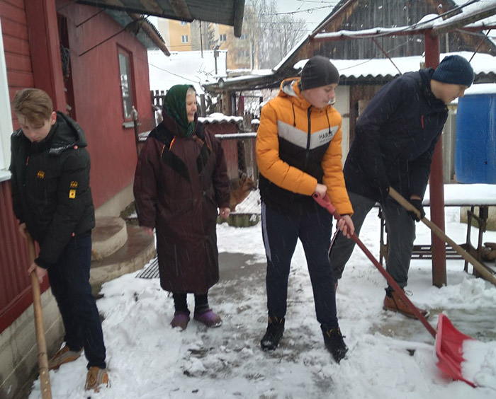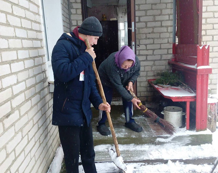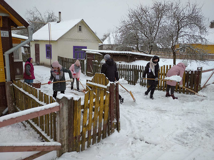 И тогда  ребята решительно взялись за дело и дружно поддержали областную волонтерскую акцию «Зимняя пора добрых дел». После завершения учебных занятий 22 волонтёрских отряда Мостовщины  из числа старших школьников всех учреждений образования сразу  отправились  к нуждающимся в заботе одиноким пожилым людям расчищать от снега дворы: от дома до калитки, от колодца до мест хранения дров и т.д.  Ну и дров, воды, по необходимости, принести.