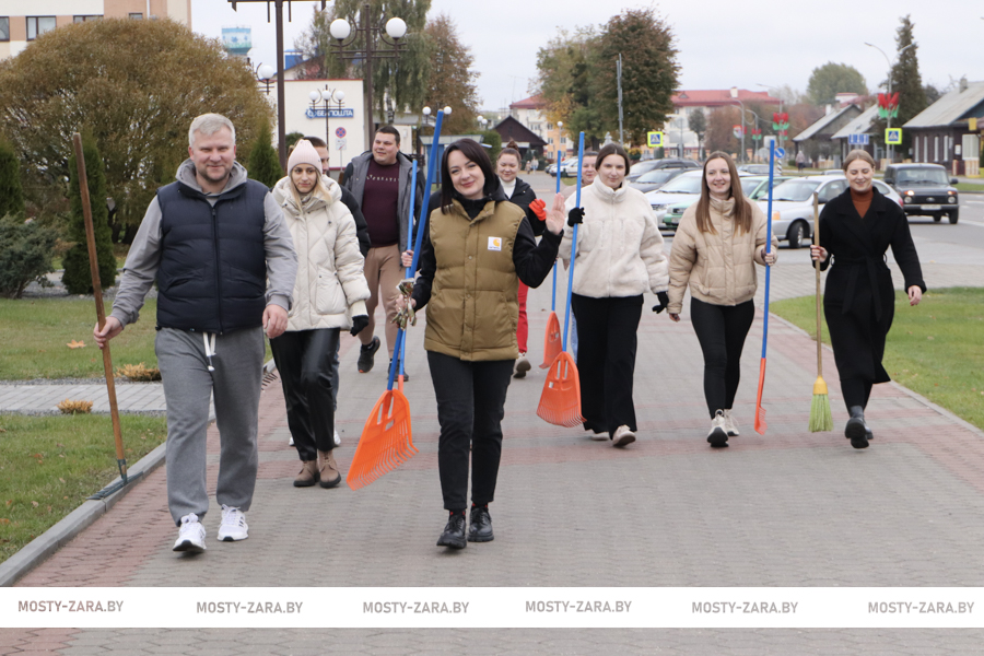 Они – это активная молодёжь предприятий и учреждений города, члены Молодёжного парламента при Мостовском районном Совете депутатов и районной организации Белорусского республиканского союза молодёжи. В один из октябрьских дней, вооружившись граблями, метёлками и прихватив с собой хорошее настроение, парни и девушки вышли на городские улицы, чтобы сделать свой город чище и уютнее.