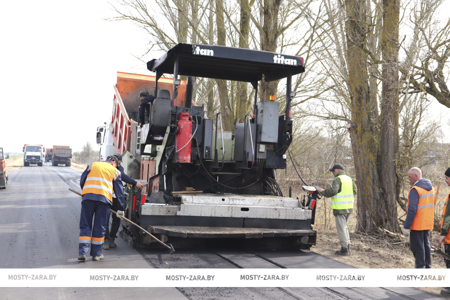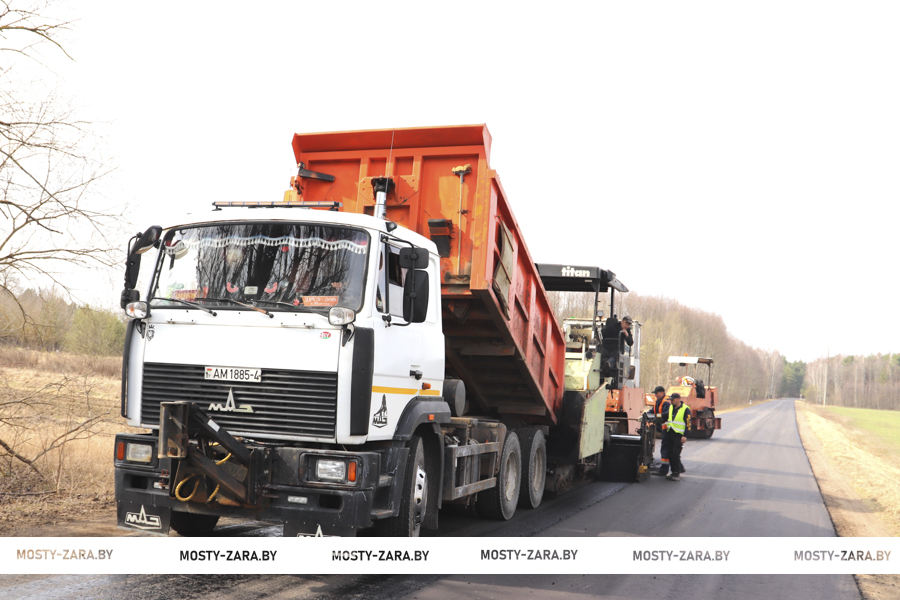 Его востребованная продукция сразу идёт в дело: у агрогородка Зарудавье в сторону деревни Старина мостовские дорожники ведут укладку асфальта.