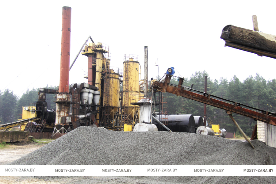 Мы побывали на предприятии. МАЗы из Щучинского автопарка каждые полчаса доставляли сюда гравий. Грохотали дробилки, загружаемые Амкодором камнями, выдавая щебень. В грузовики дорожников загружалась асфальтобетонная смесь (АБС) и отправлялась к месту асфальтирования.