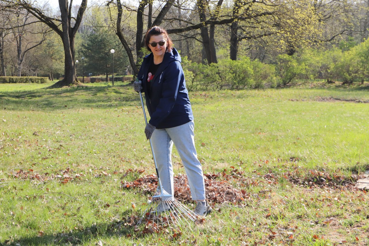 Так, председатель районной организации «Белая Русь» Марина Давыдик вместе с другими наводила порядок в городском дендропарке.
