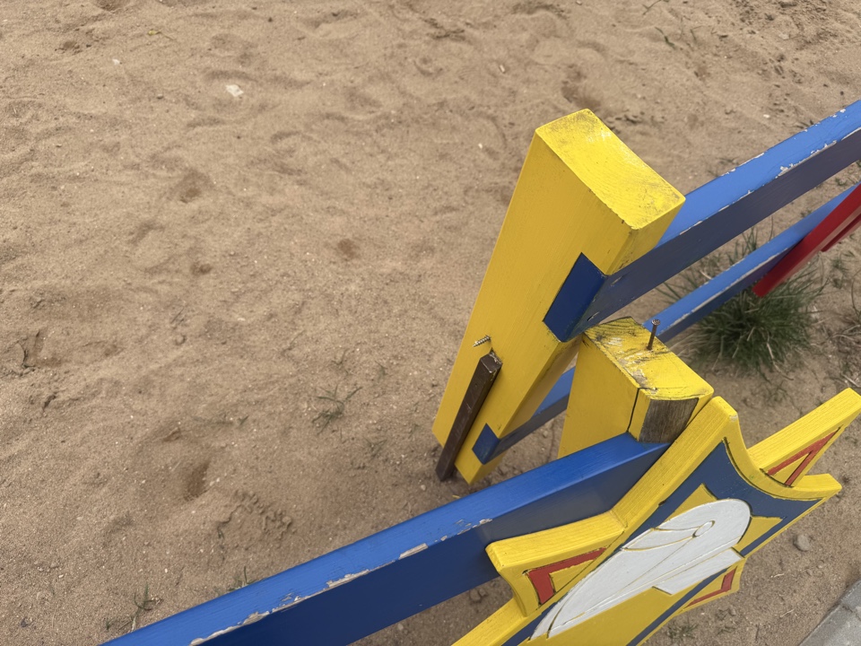 Опорные плоскости качелей-балансиров прогнили. Также, на некоторых из них отсутствовали ручки для держания, торчали гвозди.