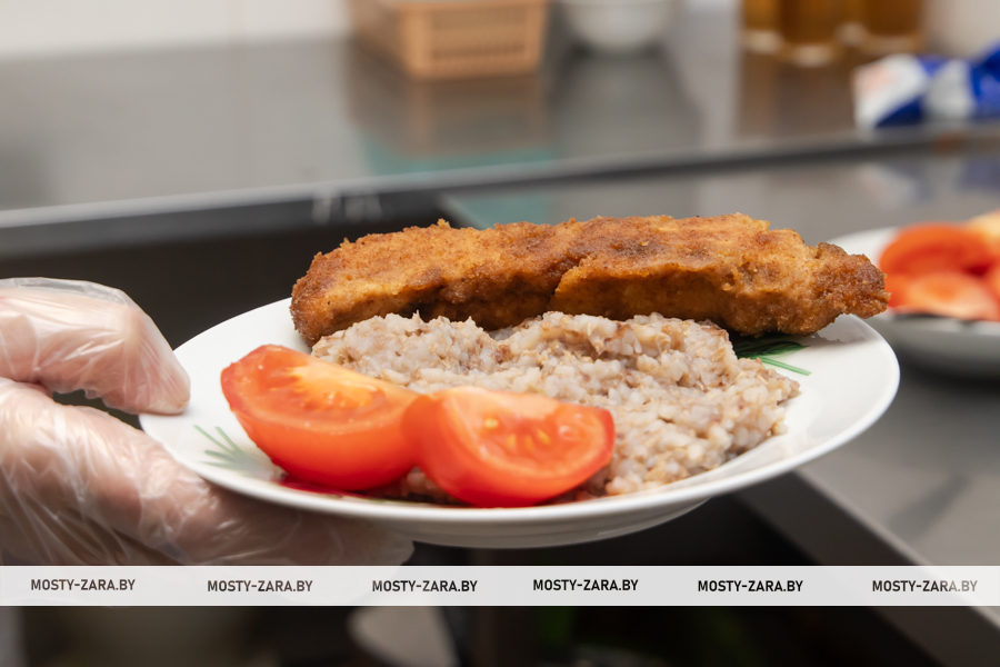 После встречи с педагогическим коллективом школы Марина Давыдик и Надежда Хальцова вместе с директором школы Александром Старовойтовым посетили школьную столовую, где оценили качество приготовленной еды и условия хранения продуктов. Как сообщил директор школы, куриные наггетсы, что сегодня были в школьном меню, пользуются особой любовью и популярностью у педагогов и учащихся.