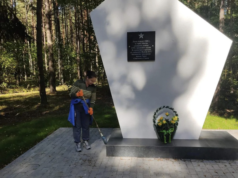 Дань уважения героическому прошлому: коллектив Мостовского социального пансионата «Принеманье» навёл порядок на памятном месте