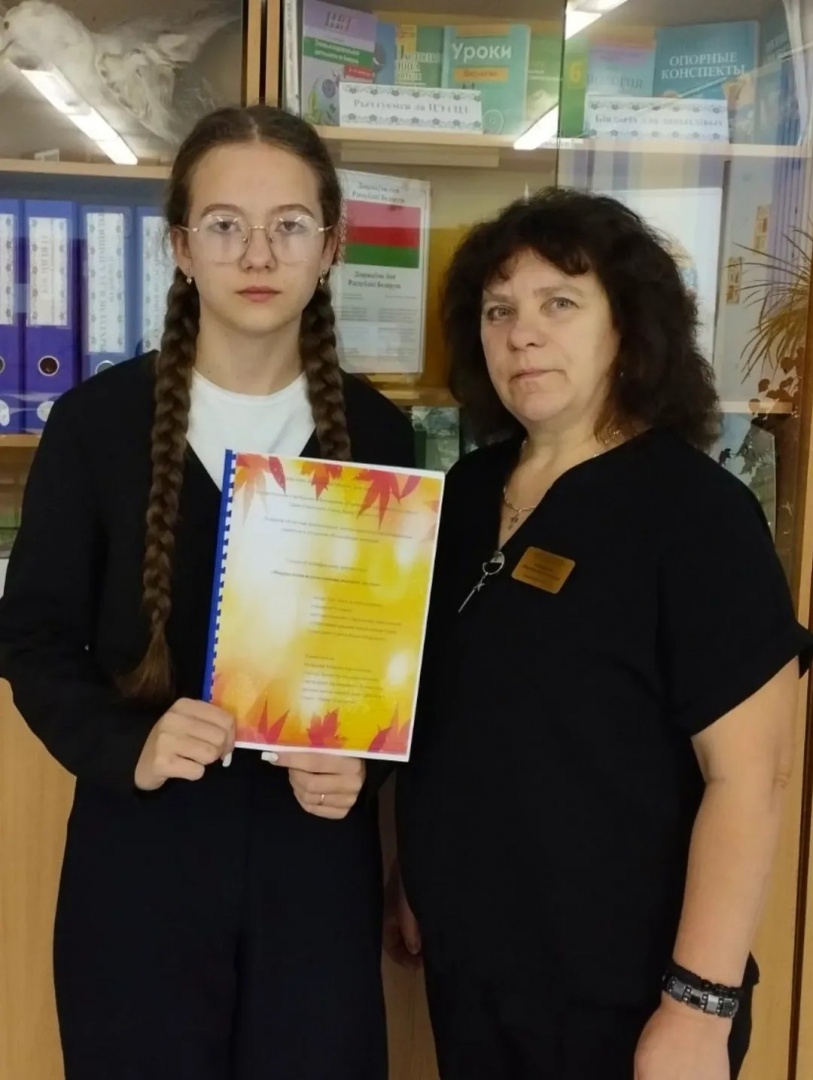 Его одноклассница Анастасия Гис за годы учёбы тоже стала гуру олимпиад и конкурсов, но уже в другой, естественнонаучной области: она увлекается химией и биологией. Особую любовь девушка испытывает к экологическому направлению, регулярно участвуя в конференциях. Недавно под руководством учителя биологии и химии Марины Базарской она завоевала два диплома ‒ на районном (I степени) и областном (III степени) этапах конкурса экологических проектов «Зелёная школа». Каникулы у Анастасии тоже пройдут в трудах: она принимает участие в областной конференции учащихся школ «Хрустальная Альфа-2025».