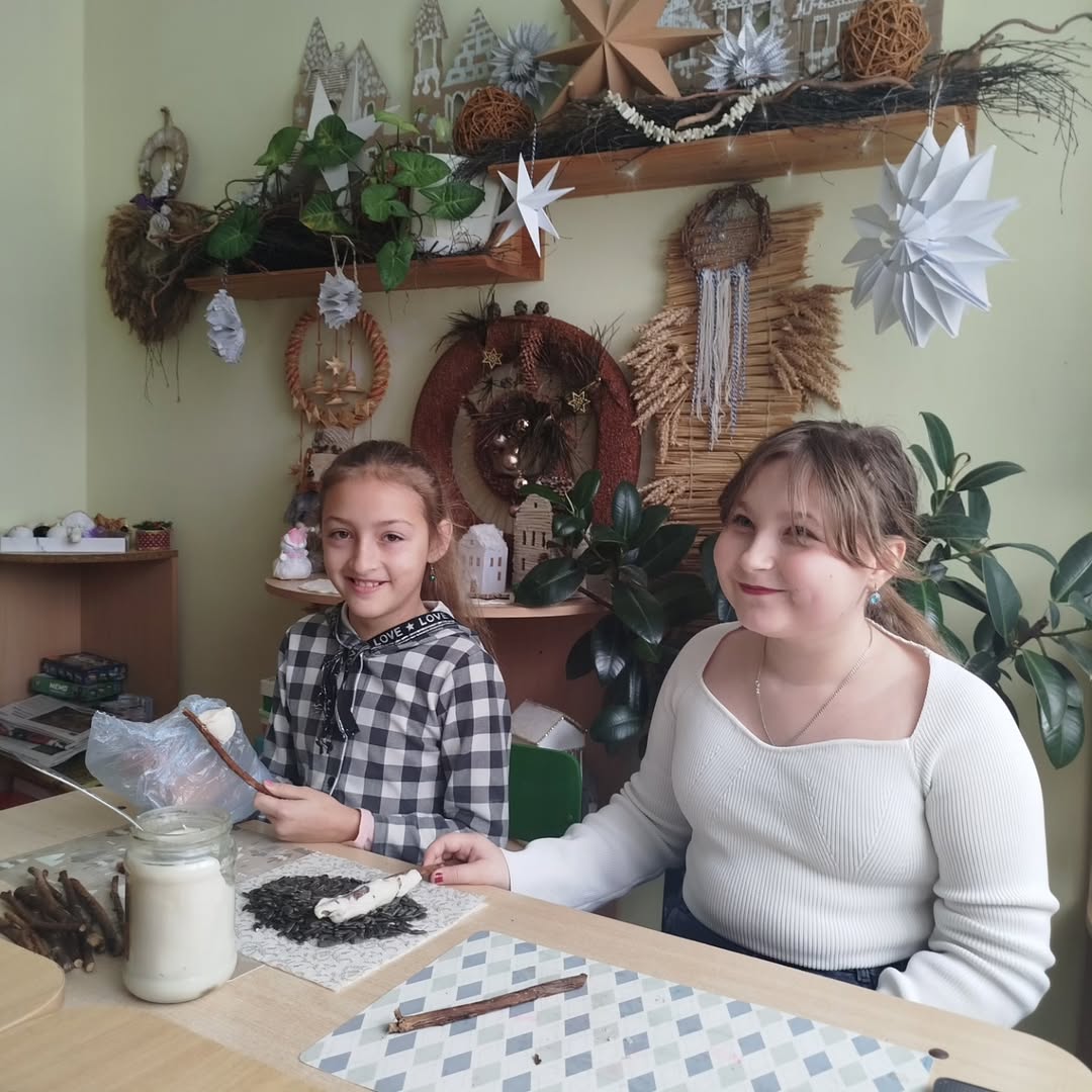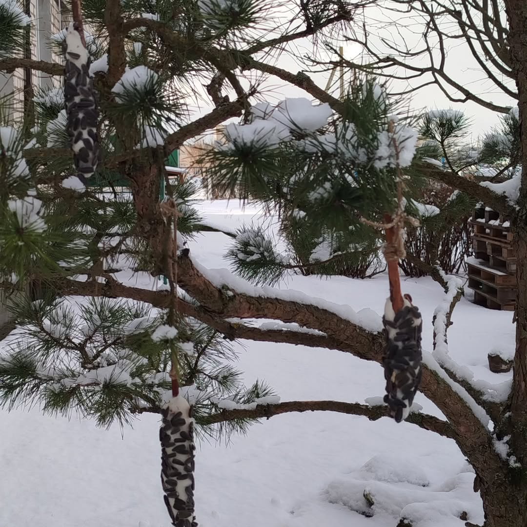 Они приготовили из семян и ягод «эскимо» для птиц, которые зимуют в нашей местности и нуждаются в помощи. Снег и лёд скрывают семена, ягоды и насекомых, что затрудняет для них поиск пищи. Поэтому пернатые друзья будут очень благодарны ребятам за заботу и вкусные лакомства.