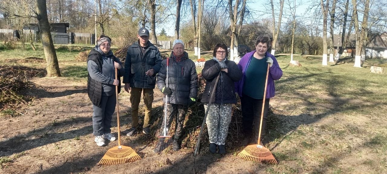 ФОТОФАКТ. Работники Лунненского сельсовета на республиканском субботнике трудились в парке агрогородка Лунно