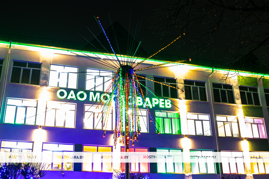 Уже по традиции первыми в городе к Новому году подготовились на градообразующем предприятии: гирлянды, "дождики" и прочая иллюминация освещают дорогу тех, кто идёт с работы или на работу мимо ОАО "Мостовдрев". Венчает экспозицию украшенная огнями живая ель, что уже который год становится магнитом для глаз горожан, соскучившихся по яркому свету. Специально для вас засняли новогоднюю инсталляцию за полчаса до рассвета.