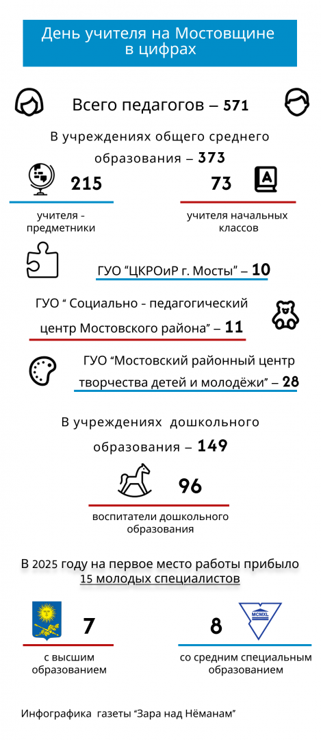 Какие они, педагоги Мостовщины? Предельно искренние, в высшей степени интеллигентные, умные, порядочные, вдохновляющие на самые смелые мечты и достижения… Каждый из нас в суете будней бережно хранит в сердце частичку того света, что они подарили нам когда-то. И сегодня, накануне профессионального праздника, мы благодарим их за удивительную душевную щедрость, за мудрость и терпение, за ежедневный огромный труд!
