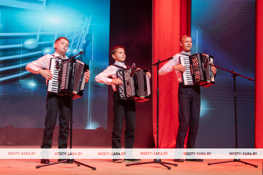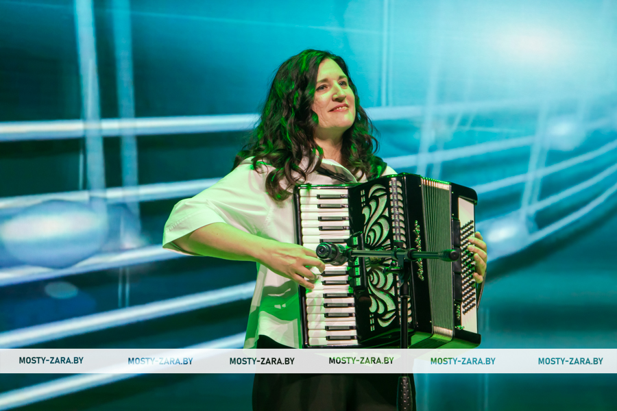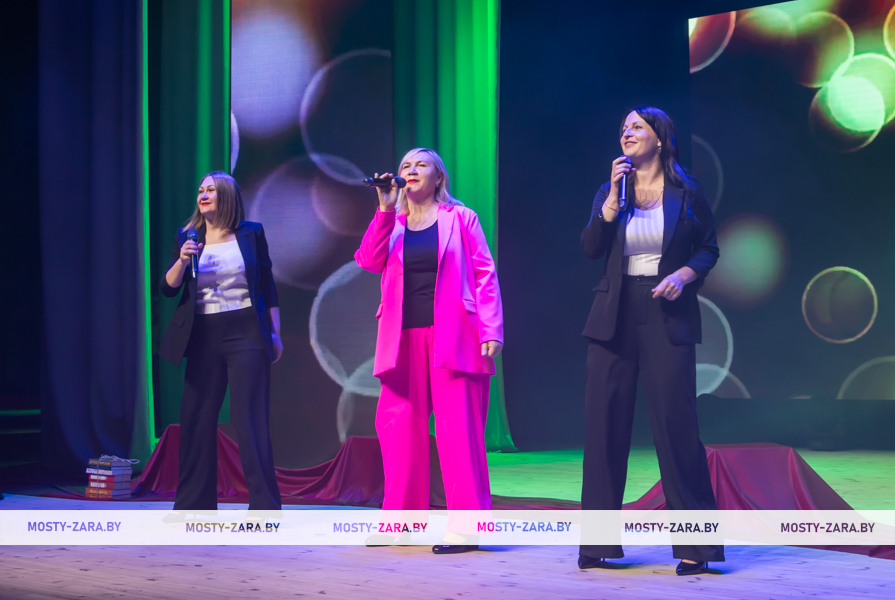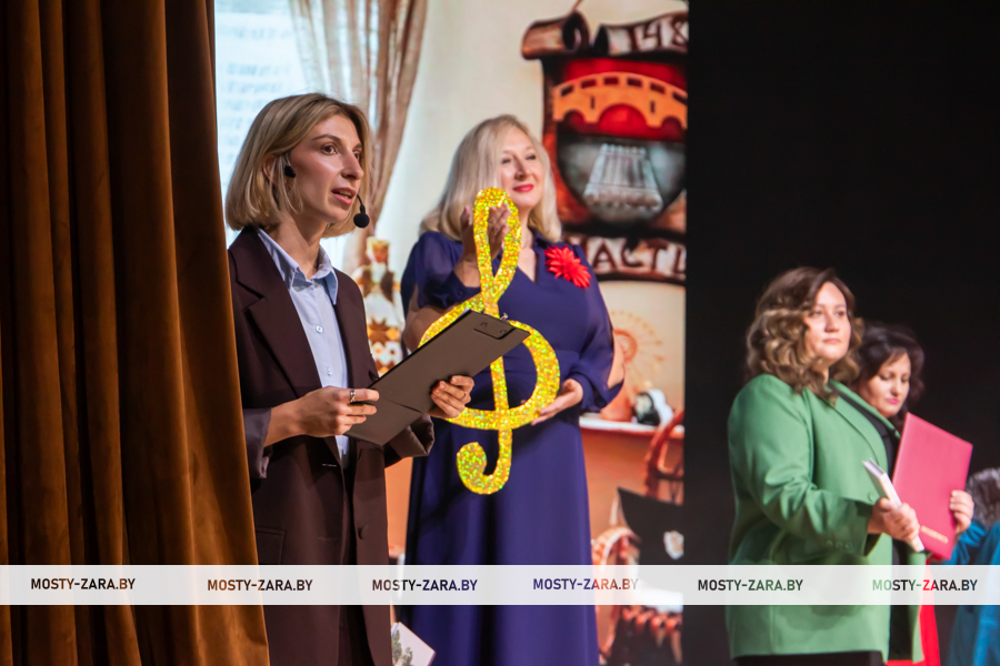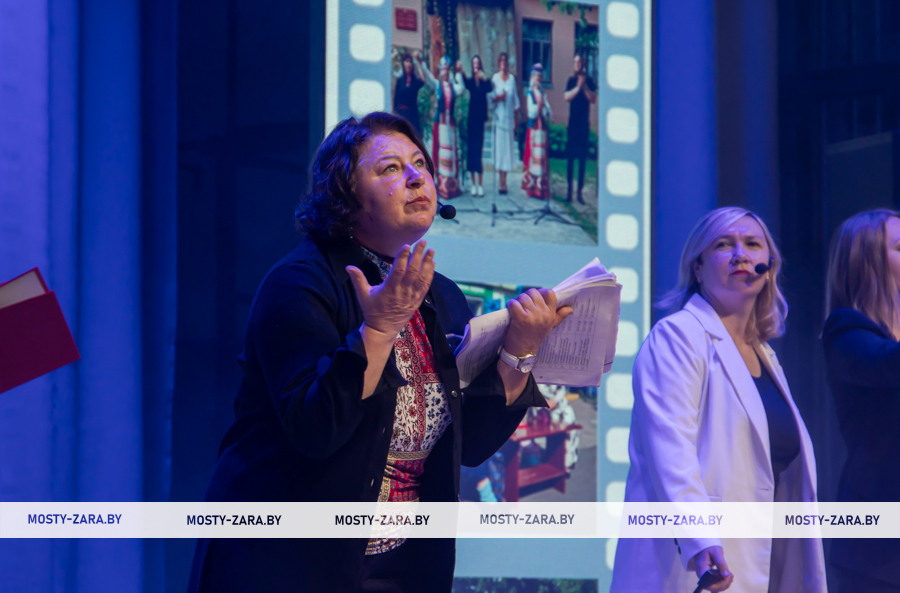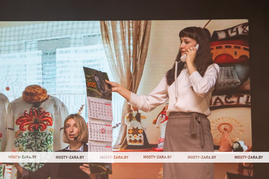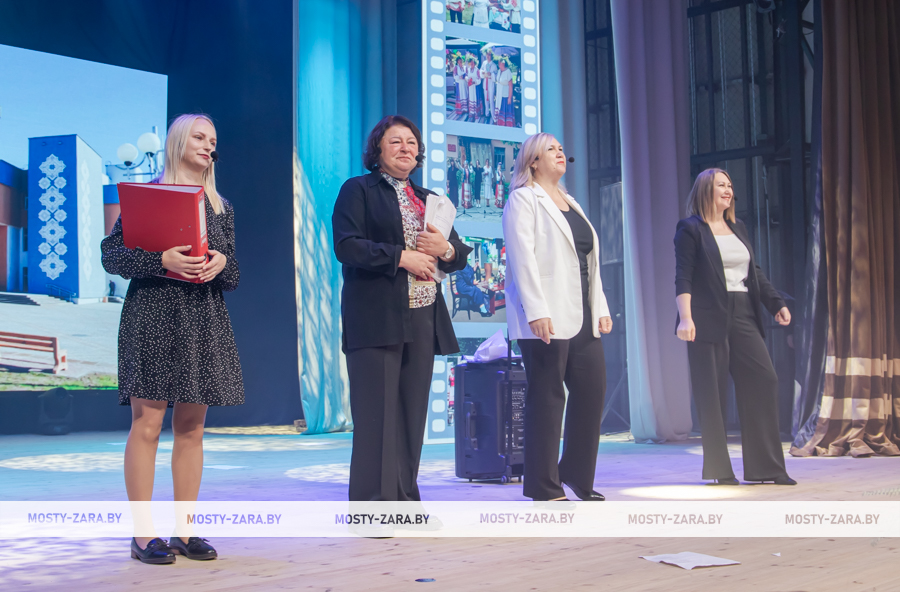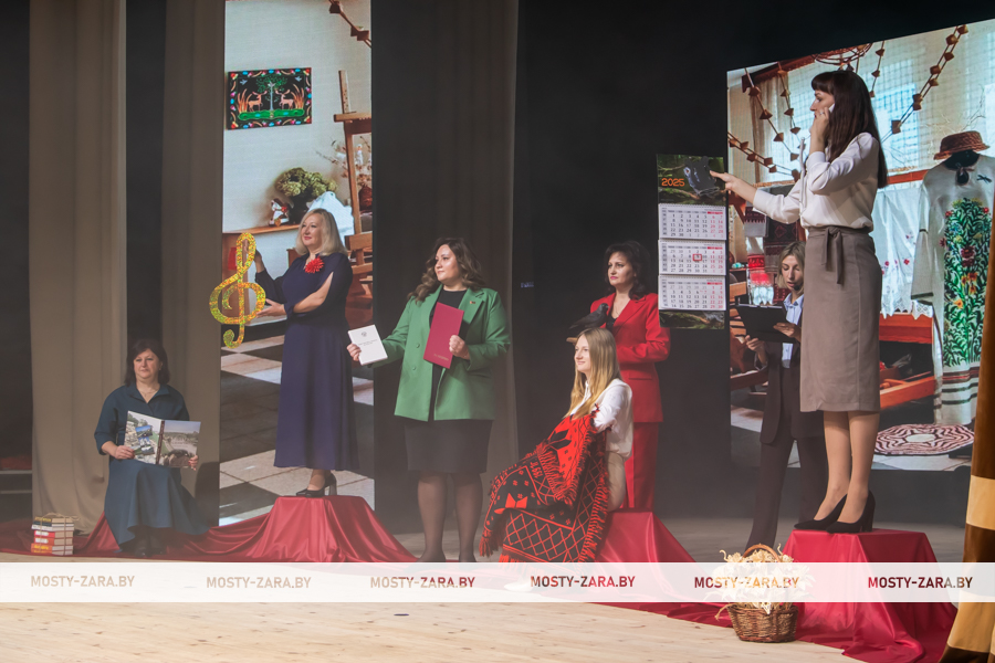 Начался концерт с шуточной сценки, где директор туристического центра Ольга Хальцова провела «экскурсию» по уникальной экспозиции, которая оказалась на сцене: там замерли руководители культурных учреждений Мостовщины. Юмор и самоиронию в номере зрительный зал оценил дружными аплодисментами.