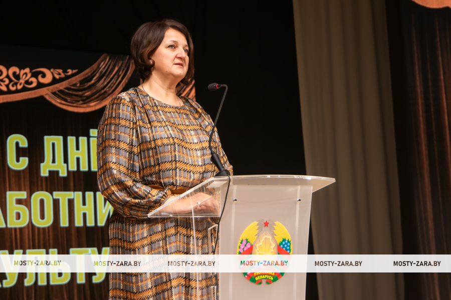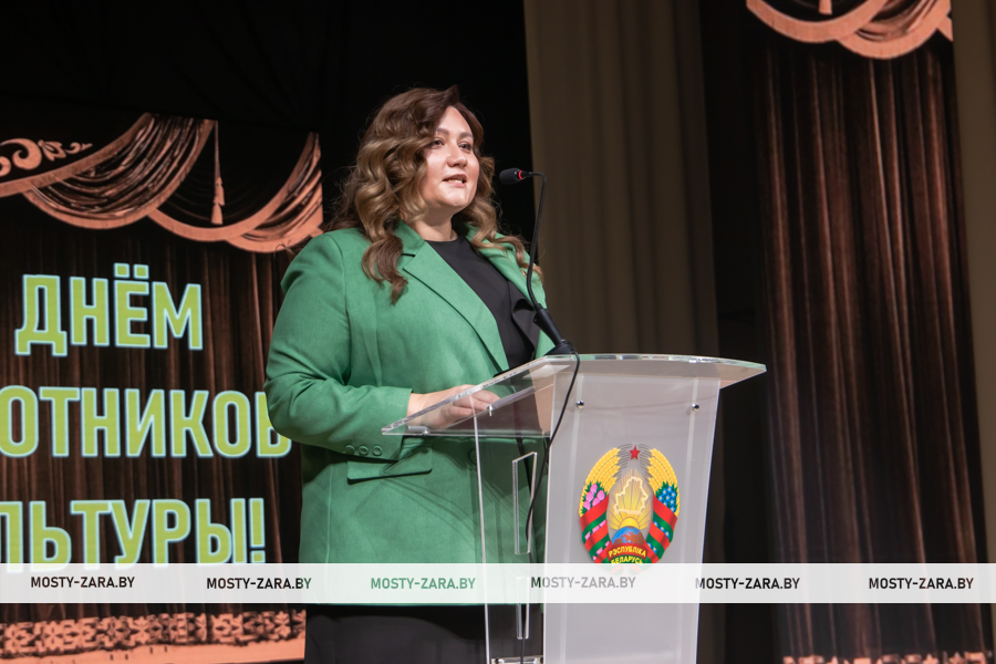 Официальную часть мероприятия продолжила заместитель председателя райисполкома Марина Давыдик, которая в своём выступлении упомянула все сферы культурной деятельности Мостовщины ‒ от музейного дела до работы сельских филиалов районного центра культуры.